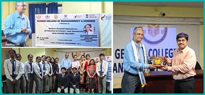 George College of Management and Science, Department of Hospital Management in association with IIC successfully organised a seminar on“Modern Hospital Operations: Optimizing Efficiency and Enhancing Healthcare Delivery.” We were truly privileged and honored to have Mr. Subhranath Maitra, GM – Operations at ILS Hospital, Dumdum, join us as Guest Speaker for today’s seminar. His valuable insights and extensive experience in hospital operations greatly enriched the session, offering practical perspectives on improving efficiency and delivering quality healthcare services in today’s evolving medical landscape. Date and time of the seminar- 21st April, 2026 at 2:30 PM